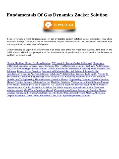 Read Fundamentals Of Gas Dynamics Zucker Solutions Kindle Editon