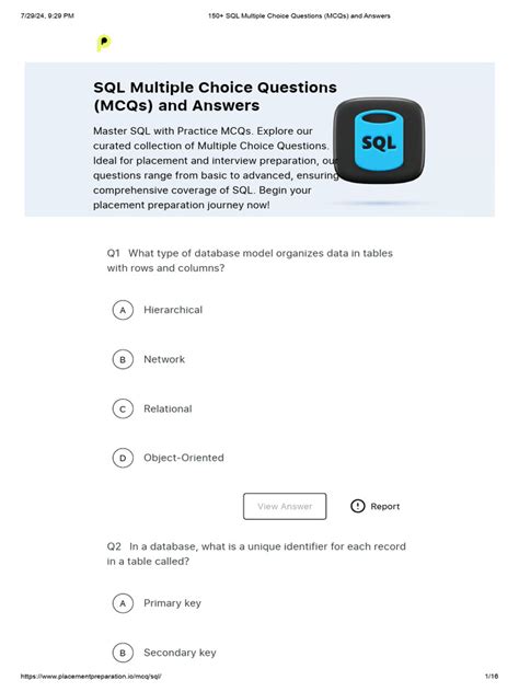 Read Oracle Sql Multiple Choice Questions With Answers PDF